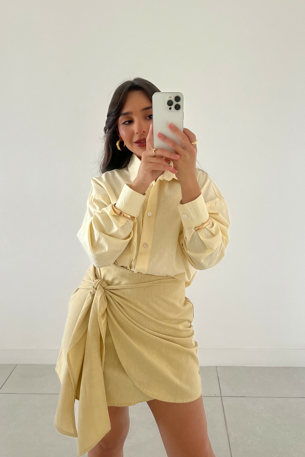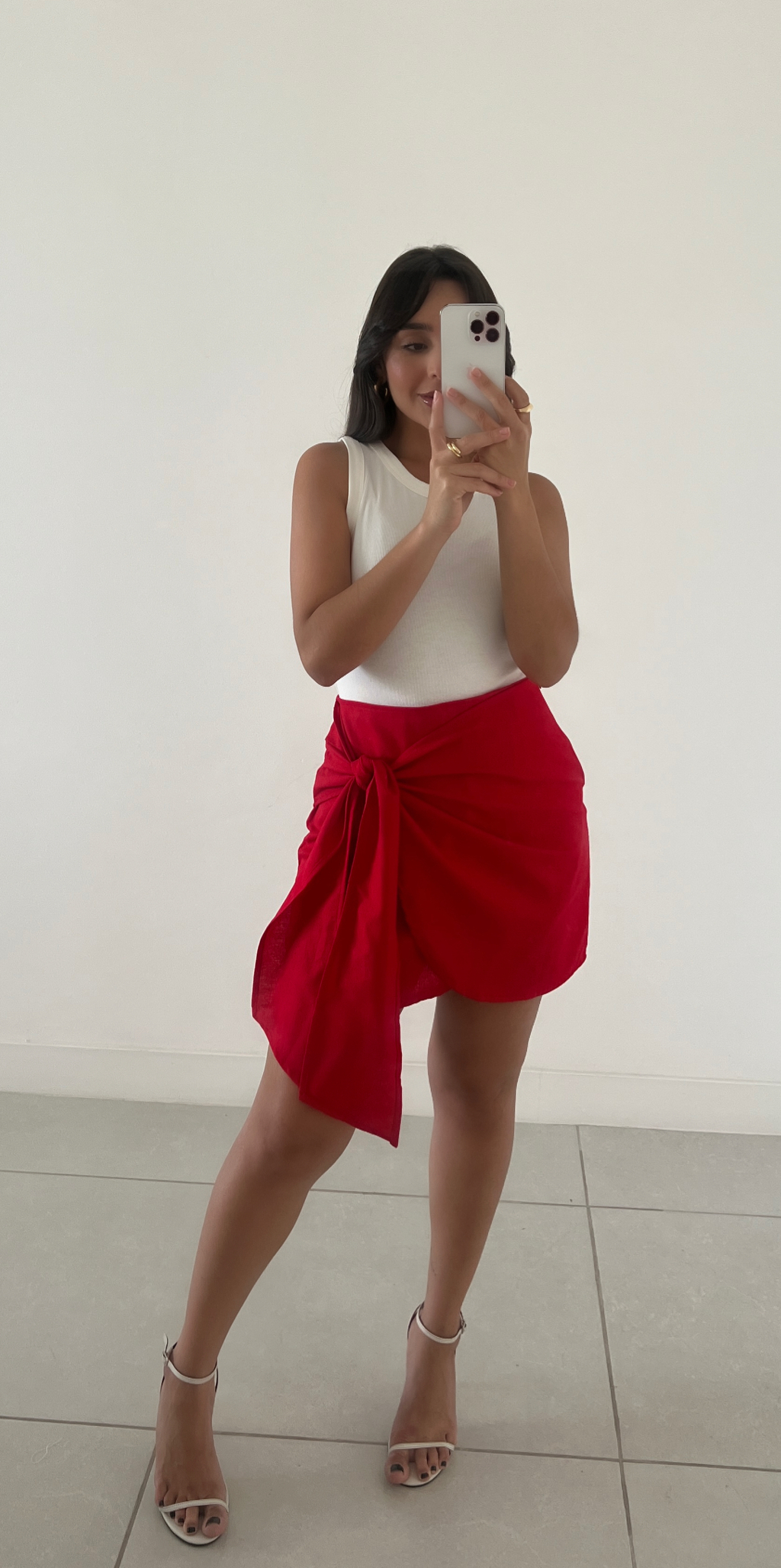 Para quem ama um visual moderno e feminino, a Saia Maitê é aquela peça que transforma qualquer produção! Confeccionada em viscolinho, possui caimento leve e fluido, ideal para compor looks elegantes com conforto. O detalhe de amarração transpassada na frente garante charme extra e permite um ajuste personalizado ao corpo, enquanto o fechamento lateral em zíper eleva o acabamento da peça.