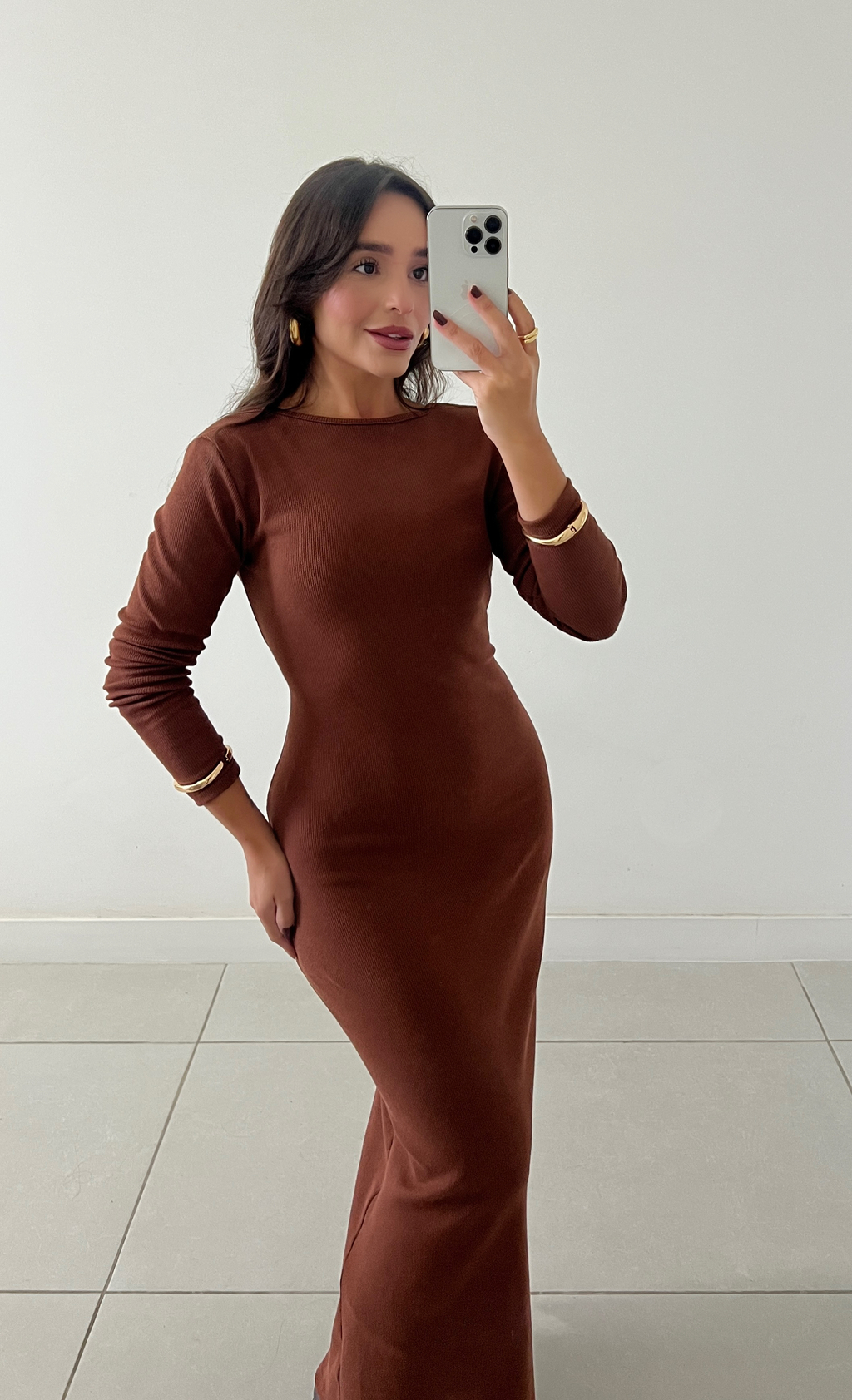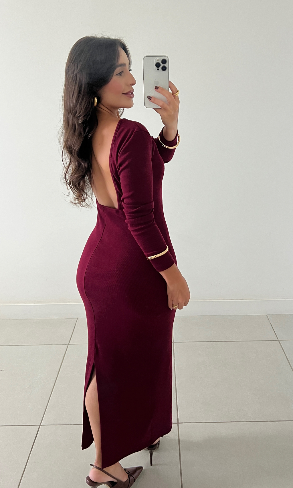 Com um caimento fluido que valoriza a silhueta, o vestido Leona é confeccionado em ribana de viscose com elastano, tecido canelado que proporciona conforto extremo com toque macio e leve elasticidade. Seu decote posterior profundo traz um toque de sensualidade equilibrada, enquanto o comprimento maxi midi com fenda inferior e costas abertas adiciona movimento e sofisticação ao visual.
